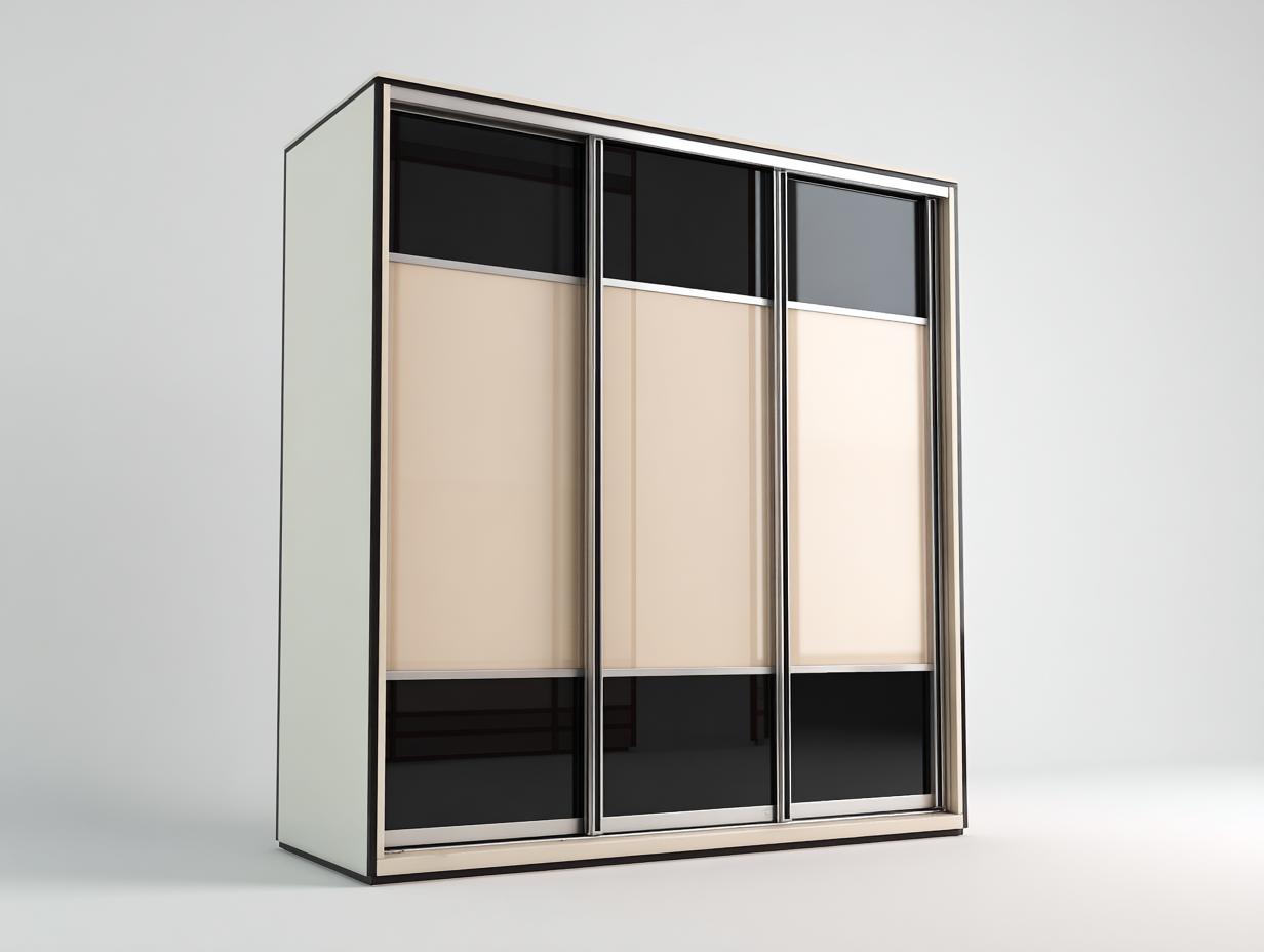 Armadio-Legno-Vetro-180x65x210 cm-Nero-Beige-Stile moderno