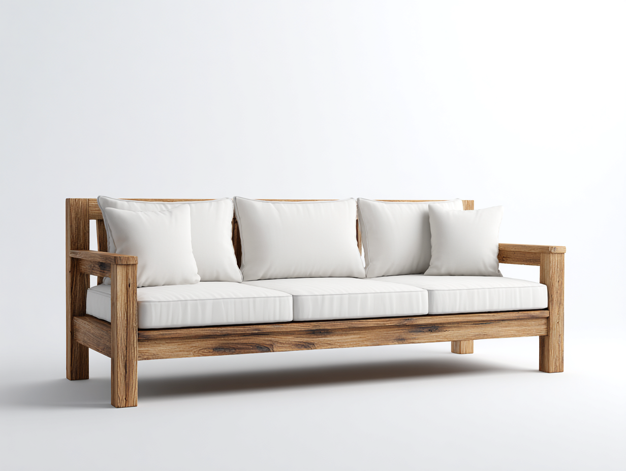 Divani da esterno-legno massello-tessuto-198x90x78 cm-Naturale-Bianco-design minimalista